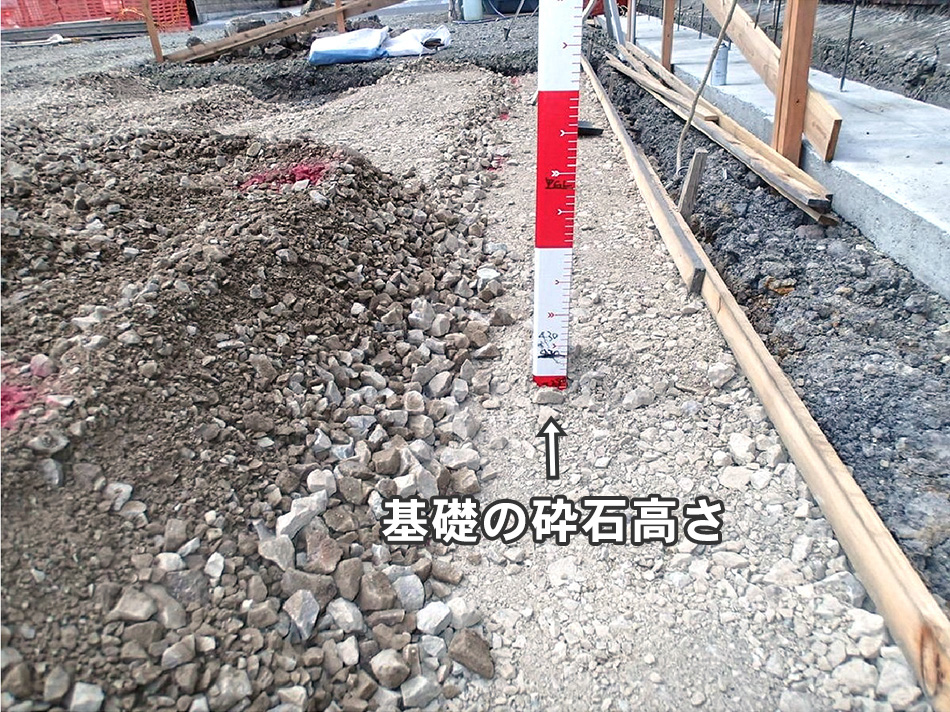 地盤調査により軟弱地盤撤去→砕石を敷き込み締固め